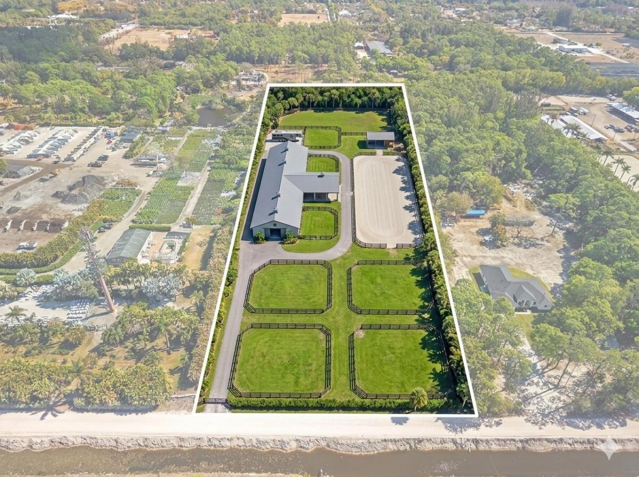 Computer generated possible equestrian facilities. Situated on a sprawling 7.08-acre parcel, this unique property features a charming rustic 3-bedroom, 2-bath single-family home designed with an open-concept layout that promotes comfortable, relaxed living. The setting offers a rare blend of privacy and space while maintaining unbeatable proximity to the city. Ideally located in Palm Beach County, you'll enjoy quick access to top destinations, including hospitals, shopping, dining, and Palm Bea...Computer generated possible equestrian facilities. Situated on a sprawling 7.08-acre parcel, this unique property features a charming rustic 3-bedroom, 2-bath single-family home designed with an open-concept layout that promotes comfortable, relaxed living. The setting offers a rare blend of privacy and space while maintaining unbeatable proximity to the city. Ideally located in Palm Beach County, you'll enjoy quick access to top destinations, including hospitals, shopping, dining, and Palm Beach International Airport. Equestrian enthusiasts will appreciate being just minutes from the renowned International Polo Club Palm Beach and the area's premier polo and riding facilities--truly the best of both worlds. This amazing lot offers ample acreage to develop barns, paddocks, arenas, or a custom equestrian estate, the possibilities are truly exceptional. The road A Road is undergoing a widening and paving upgrade. This is definitely a rare offering that combines location (3rd lot from Okeechobee Blvd) land, and limitless potential--this is an opportunity not to be missed.